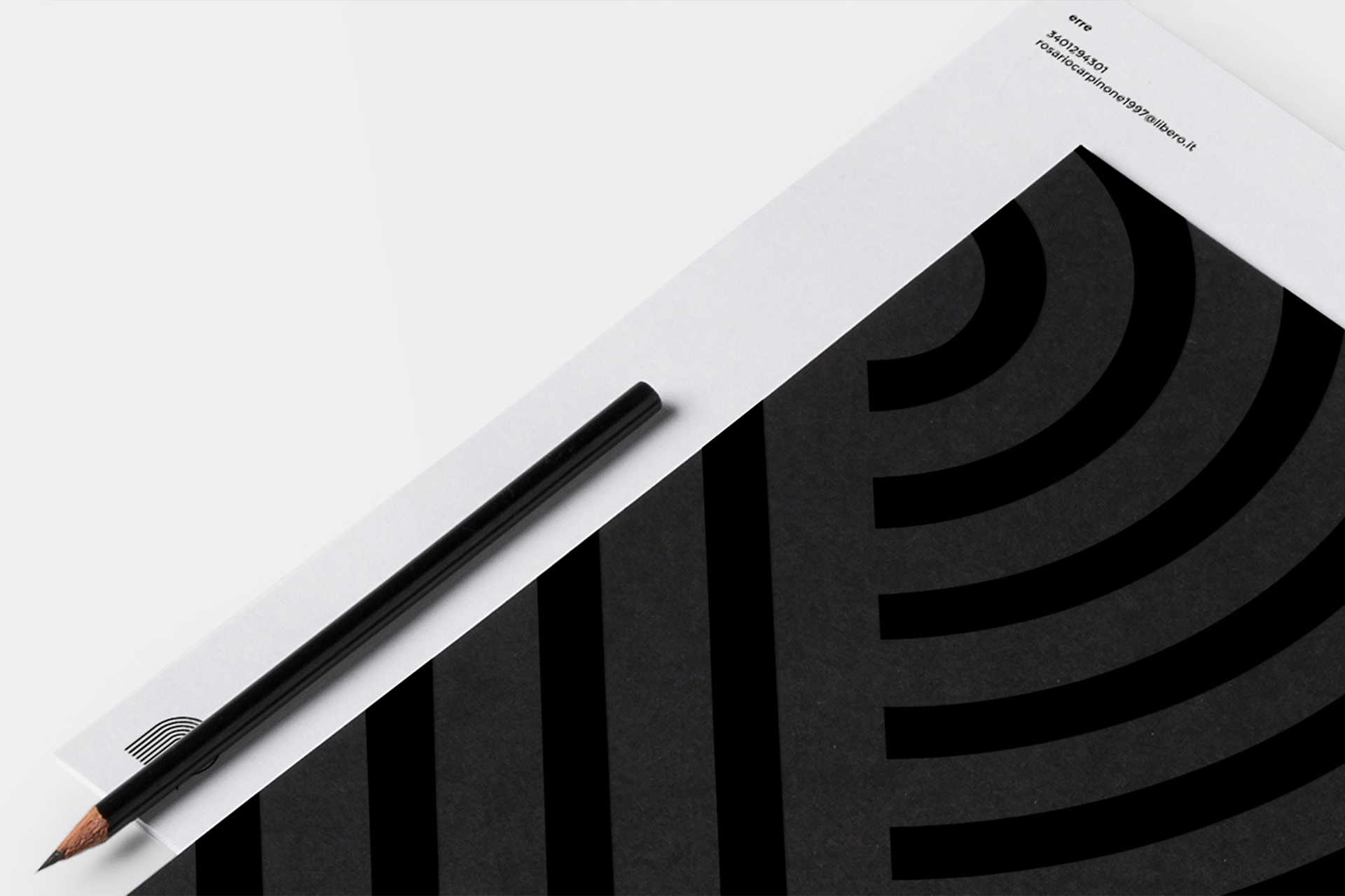 Erre is the name of an emerging disc jockey. We were inspired by vinyl when designing the logo.